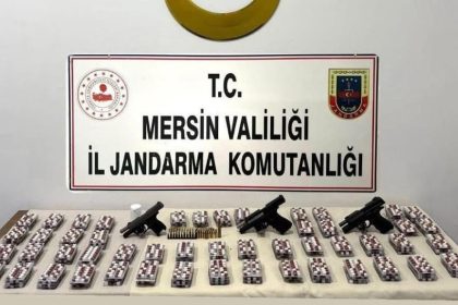 Mersin’de, jandarma ekiplerince uyuşturucu madde ticaretine yönelik yürütülen çalışmada binlerce sentetik hap ve 3 tabanca ele geçirilirken, 3 şüpheli gözaltına alındı. Mersin İl Jandarma Komuta...