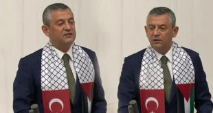 Olağanüstü toplanan TBMM Genel Kurulu’nda dikkat çeken anlardan biri CHP Genel Başkanı Özgür Özel ile MHP Genel Başkanı Devlet Bahçeli’nin tokalaşması oldu. Genel Kurul salonunda sandalyelere Türkiye ve Filistin bayraklarının yanı sıra Filistin kefiyesini simgeleyen atkılar bırakıldı. Kürsüde konuşan Özel, milletvekillerine ve iktidara seslenerek, “Bir talimatla Filistin’de yağmur olup açlığı …