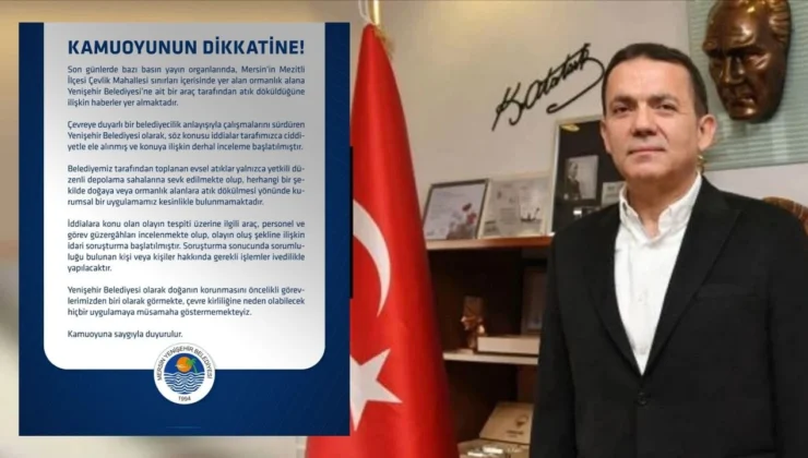 Yenişehir Belediyesi, Mezitli ilçesindeki ormanlık alana belediye aracıyla atık döküldüğü iddiaları üzerine derhal inceleme ve idari soruşturma başlatıldığını duyurdu. Yenişehir Belediyesi, son günler...