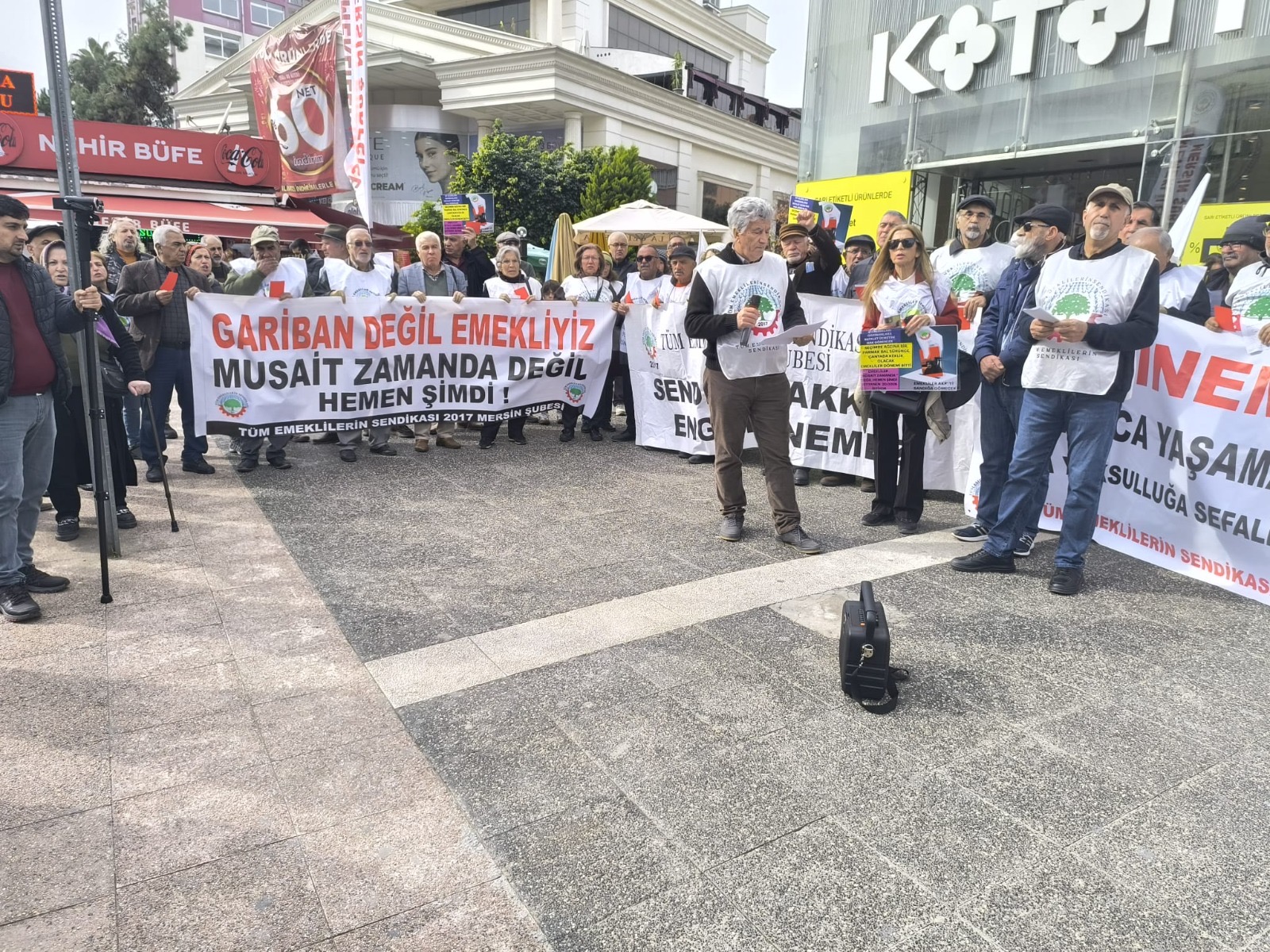 Seyyanen zam talebiyle Mersin’de sokağa çıkan emekliler, AKP hükümetini sazlı sözlü eylemle protesto etti. Emekliler, “Gariban değil, emekliyiz. Müsait zamanda değil, hemen şimdi” yazılı pankartlar aç...