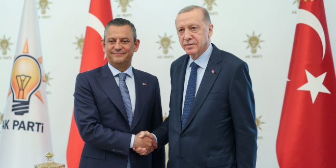 CHP Genel Başkanı Özgür Özel, AKP Genel Merkezi’nde Cumhurbaşkanı Erdoğan ile bir araya geldi. İki liderin gündeminde yeni anayasa tartışmaları, yargı krizi, ekonomik kriz gibi başlıklar yer aldı.