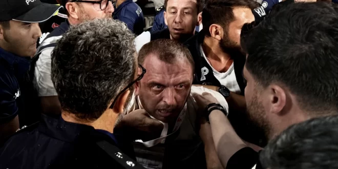Trendyol Süper Lig’in ikinci haftasında oynanan Göztepe-Fenerbahçe karşılaşmasında Fenerbahçe Spor Kulübü Başkanı Ali Koç’u iterek düşüren zanlı gözaltına alındı.