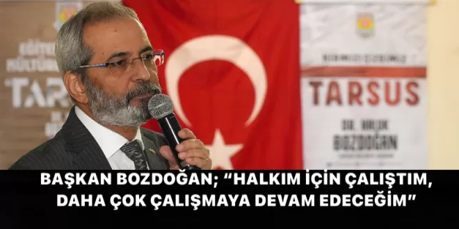 Tarsus Belediye Başkanı Dr. Haluk Bozdoğan Tarsus’u hak ettiği bir belediyeye ulaştırma gayesiyle hareket ettiklerini belirterek, “Özlem Sitesi’nin bendeki yeri ayrı. Çünkü beni geçmiş dönemde seçim döneminde bağrınıza o kadar sıcak bastınız ki bugün bile buraya gelirken, yürürken hep o geçmiş dönemleri anımsadım. Bir mesleği yaparken meslek ahlakına bağlı olarak doğrulukla, dürüstlükle bir çalışma yaparsınız. Belediye Başkanı olduğumda ilk yaptığım şey, bu kentte Tarsus halkına hak ettiği bir belediyenin yaratılmasıydı. Geldiğimizde Sosyal Hizmetler yönetmeliği, disiplin yönetmeliği yoktu. Belediyenin arşivi yoktu. Müteahhitlerin ve rantın uğrak yeriydi. Kozmik odalar kurulmuş, kozmik odalar maalesef para çantası taşıyıcıların olduğu bir yer haline gelmişti.” ifadelerini kullandı.