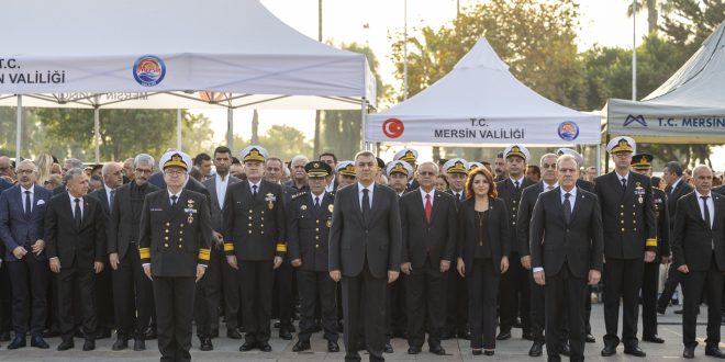 Cumhuriyet Meydanı’nda gerçekleştirilen tören, Mersin Valiliği, Akdeniz Bölge ve Garnizon Komutanlığı ve Mersin Büyükşehir Belediyesi ile kent protokolü tarafından Atatürk Anıtı’na çelenk sunulmasıyla başladı. Saat 09.05’te siren sesleri eşliğinde saygı duruşunda bulunuldu. Saygı duruşunun ardından Akdeniz Bölge ve Garnizon Komutanlığı Bandosu eşliğinde İstiklal Marşı’nın okunmasıyla resmi tören sona erdi.