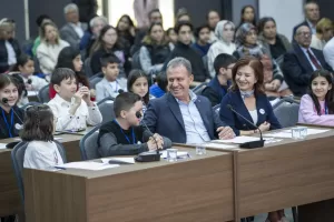 Mersin Büyükşehir Belediye Başkanı ve CHP Mersin Büyükşehir Belediye Başkan Adayı Vahap Seçer, eşi Meral Seçer ile birlikte Mersin Büyükşehir Belediyesi 1. Dönem Çocuk Meclisi Mart Ayı Olağan Meclis Toplantısı’na katıldı.