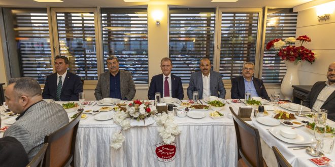Mersin Büyükşehir Belediye Başkanı Vahap Seçer, Mersin Minibüsçüler Esnaf Odası tarafından düzenlenen iftar programında, şehir içinde faaliyet gösteren minibüs kooperatiflerinin başkanları ve yönetim kurulu üyeleri ile bir araya geldi.