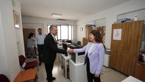 Başkan Turgut’a, bayramlaşma ziyaretinde yardımcıları Bülent Kaya, Rahile Demren, Cano Serpin, Osman Şen ve Şeyma Savar Demren eşlik etti.