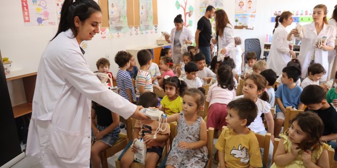 İklim Değişikliği ve Sıfır Atık Müdürlüğü yetkilileri bu kapsamda Toroslar Belediyesinin Osmaniye Gündüz Bakımevi’nde eğitim gören minik öğrencilerine sıfır atık eğitimi verdi, tohum kalemleri hediye etti. Minikler, çizgi film ve animasyon görsellerle temiz ve sağlıklı bir çevrenin önemi hakkında bilgilendirilirken, arkadaşlarıyla birlikte “Atık ayrıştırma oyunu” da oynadı.