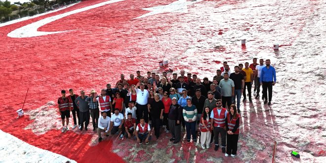 Kent merkezine 10 kilometre uzaklıkta bulunan ve kentin birçok noktasından rahatlıkla görülebilen Dev Türk Bayrağımız, yenilenen haliyle yeniden görkemli bir görünüm kazandı.