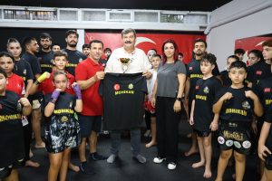 Spor salonunda keyifli anların yaşandığı ziyarette, Başkan Yıldız sürpriz yaparak Muay Thai eldiveni taktı ve sporcularla birlikte bazı teknik hareketler yaptı. Sporcuların gösterdiği performansı ilgiyle takip eden Başkan, gençlere moral verdi.