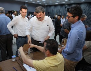 Mersin Büyükşehir Belediyesi Kongre ve Sergi Sarayı Çok Amaçlı Salon’da gerçekleştirilen toplantıda; 13 ilçe için 7 sandık kuruldu. CHP ve MHP ile AK Parti’den oluşan Cumhur İttifakı’nın oluşturduğu 2 blok liste divan başkanlığına yazılı teklif edildi.