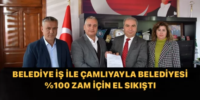Çamlıyayla Belediyesi’ndeki kadrolu işçiler için 2024 toplu sözleşme görüşmeleri rekor bir zam oranı ile imzalandı. Kadrolu işçi maaşlarına ve sosyal haklarına yüzde 100 artış yapıldığı sözleşme, Çamlıyayla Belediye Başkanı İsmail Tepebağlı ile Belediye İş Sendikası Mersin Şube Başkanı Nail Kaya tarafından imzalandı.