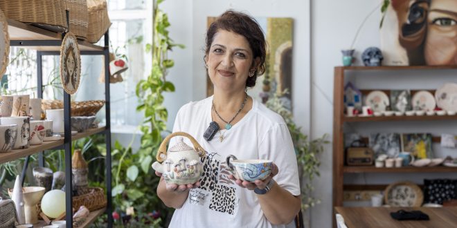 Mersin Büyükşehir Belediyesi’nin üretici kadın stantları, kadın girişimcilerin hayallerine bir adım daha yaklaşmalarına destek oluyor. Stantlarda yer bulan üretici kadınlardan biri de seramik üretimi yapan Zeycan Yırtıcı. 15 yıllık sanat yolculuğunda yağlı boya sevgisini seramik ürünlerine de yansıtan girişimci, ürettiği özgün ürünlerle Büyükşehir’in kurduğu stantlara renk katıyor. Yıllardır kurduğu atölye kurma fikrini gerçeğe dönüştüren Yırtıcı, seramik ürünlerin yanı sıra; bambu, yağlı boya ve farklı el işi ürünlerini de atölyesinde sergiliyor.