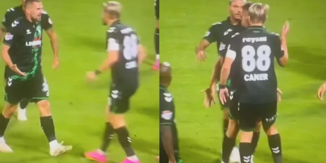 Sakaryaspor‘un yeni transferlerinden Caner Erkin 76. dakikada , takım arkadaşı olan Burak Altıparmak ile bir tartışma yaşadı. Erkin, yaşanan bu tartışmanın ardından rakibine tokat attı.