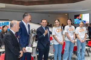 Takım önemli isimlerinden Sinem Ateş ise desteklerinden dolayı Başkan Özyiğit’e teşekkür ederek, şampiyonluktan dolayı çok gururlu olduklarını söyledi. Ateş, “Öncelikle çok mutlu ve gururluyuz. Bu seneki hedeflerimizden biri Türkiye kupasıydı. Gerçekten şuan takım içerisinde çok güzel bir uyum var. Şimdi sırada ikinci ve en büyük hedefimiz Avrupa şampiyonluğu var. Gerçekten bu bizim için şehrimiz için çok önemli. Avrupa şampiyonluğunu alıp sonra Türkiye’deki şampiyonluğu alıp iki kupayla sezonu bitirmek istiyoruz.” dedi.