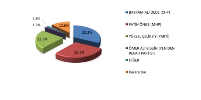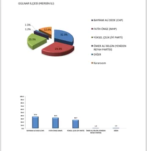 Gülnar’da yapılan kamuoyu araştırması sonucuna göre CHP’li Bayram Ali Dede yüzde 37 oranına ulaşırken MHP adayı Fatih Önce yüzde 33,5 oranında, İyi Partili Yüksel Çelik yüzde 27.6 oranında kalıyor. Bu sonuçlar, CHP’nin 35 yıl sonra ilk kez Gülnar’ı kazanabileceğini gösteriyor.