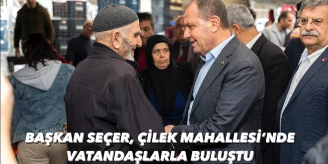 Mersin Büyükşehir Belediye Başkanı Vahap Seçer, Akdeniz ilçesine bağlı Çilek Mahallesi Semt Pazarı’nı ziyaret ederek Çilek Mahallesi halkıyla buluştu. Pazar ziyaretinde vatandaşlardan sık sık hizmet teşekkürü duyan Seçer, gelecek dönemde de hizmetlerin artarak devam edeceğini vurguladı.