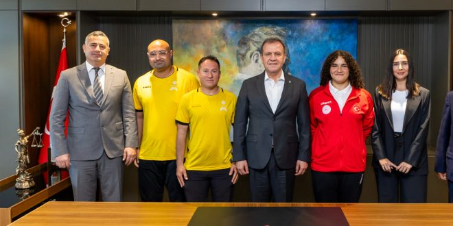 Kır Çiçekleri projesinden yetişen ve 9 Nisan’da Sırbistan’da düzenlenen Liselerarası Dünya Şampiyonası’nda gülle atma branşında 2. olan Nidanur Turhan, Mersin Büyükşehir Belediyesi Gençlik ve Spor Hizmetleri Dairesi Başkanı Emrullah Taşkın, Gençlik ve Spor Hizmetleri Dairesi Başkanlığı Gençlik ve Spor Hizmetleri Şube Müdürü Bünyamin Gökayaz, Kır Çiçekleri Antrenörleri Ali Kilisli ile Nezir Ergin ve Kır Çiçekleri Projesi Sorumlu Yöneticisi Ayper Çiğdem Toraman Mersin Büyükşehir Belediye Başkanı Vahap Seçer’i ziyaret etti.