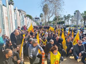 Eğitim-Sen Mersin Şubesi üyeleri bu şiddet olayını protesto etmek için Mersin İl Milli Eğitim Müdürlüğü önünde oturma eylemi yaptı.