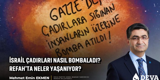 DEVA Partisi Genel Başkan Yardımcısı ve Mersin Milletvekili Mehmet Emin Ekmen,İsrail’in pazar gecesi Refah’taki sığınmacı çadırlarına bomba yağdırmasından sonra Cüneyt Özdemir’in YouTube kanalına katılarak saldırı hakkında değerlendirmelerde bulundu.