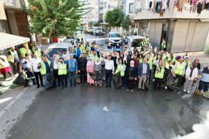 Etkinlik kapsamında mahallenin sokaklarına dağılan 7’den 70’e yüzlerce vatandaş, onlarca poşet dolusu çöp ve çeşitli atıkları toplayıp çöp kamyonlarına aktardı.