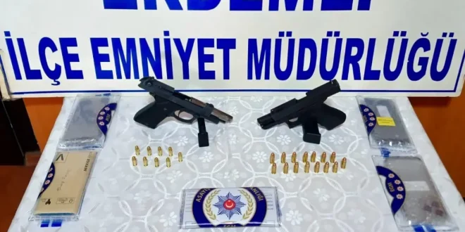 Alınan bilgiye göre, Erdemli İlçe Emniyet Müdürlüğü Asayiş Büro Amirliği ekipleri bir kişiyi silahla tehdit eden ve 500 bin TL isteyen şüphelilerle ilgili çalışma yaptı. Ekiplerin yaptığı hassas ve titiz çalışmalarla 5 şüpheli belirlendi. Polisin teknik ve fiziki takibine alınan 5 şüpheli tekrar şantajla para istemek için müştekiye ait iş yerine geldiğinde suç üstü yakalandı. Yakalanan şüphelilerin üzerinden 2 tabanca ve çok sayıda mermi ele geçirildi.