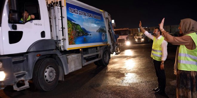 Akdeniz Belediyesi Eş Başkanları Nuriye Arslan ve Hoşyar Sarıyıldız, beraberlerinde başkan yardımcıları ve birim müdürleri ile birlikte Çevre Koruma ve Kontrol Müdürlüğü’nün faaliyet gösterdiği hizmet sahasını ziyaret ederek, gece mesaisine çıkmaya hazırlanan temizlik personeli ile buluştu. Personelle bir süre sohbet ederek taleplerini dinleyen Eş Başkanlar, ardından çöp toplama kamyonuna da binerek, onlarla birlikte sahaya çıktı.