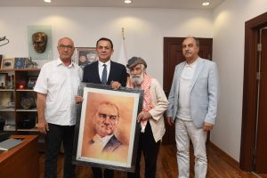 Ünlü hattat ve ressam Etem Çalışkan, Mersin Yenişehir Belediye Başkanı Abdullah Özyiğit’i ziyaret ederek, çizdiği Atatürk portresini ve kitabını hediye etti.