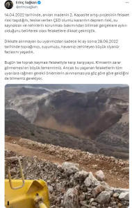Erzincan İliç’teki Anagold Madencilik’te yaşanan korkunç facia, akıllara AKP’nin İBB adayı Murat Kurum’un bakanlığı döneminde verilen ‘kapasite artışlarını’ gündeme taşıdı. Gazeteci Bahadır Özgür, “Murat Kurum, Erzincan’daki felakete ne diyecek?” diye sordu.