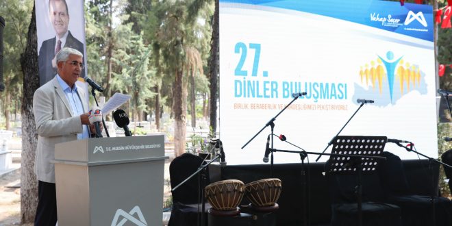 Mersin Büyükşehir Belediyesi Kültür ve Sosyal İşler Dairesi Başkanlığı’nın ev sahipliğinde düzenlenen, Mersin’in çok kültürlü ve hoşgörülü yapısını vurgulayan‘27. Dinler Buluşması’, her yıl olduğu gibi bu yıl da farklı inanç gruplarını bir araya getirdi ve kültür mozaiği Mersin’den barış, kardeşlik, birlikte yaşama mesajları verildi. Türkiye’de örneği bulunmayan bu geleneksel etkinlik, her yıl olduğu gibi bu yıl da büyük ilgi gördü. Kentin tanıtımına büyük katkı sağlayan 27. Dinler Buluşması Bayram Kutlaması Programı’na; dini temsilciler, kent protokolü, sivil toplum kuruluşları ve vatandaşlar katılım sağladı.