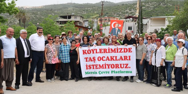 Taş ocağı tehdidine karşı köy meydanında toplanarak eylem yapan mahalle sakinleri ve çevreci vatandaşlar, ellerinde döviz ve pankartlarla slogan atıp; “Toprağıma, havama, suyuma dokunma. Köylerimizde Taş Ocakları istemiyoruz” mesajı verdi.