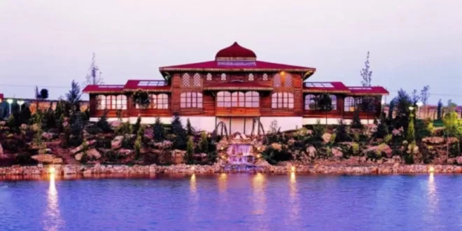 “Arazide bugüne kadar görülmedik bir yapı yükselmeye başladı. Zemini akvaryum olan bölümler, bambaşka tasarımlı havuzlar, yapay göller, tavus kuşlarından develere türlü hayvanlar, yurtdışından getirilen çeşit çeşit ağaçlar, içinden sevilen içeceklerin aktığı taşlar, duvarlarında paha biçilmez tabloların asıldığı ve döşemesinde şatafatlı mobilyaların olduğu odalar.