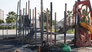 Tarsus’un 82 Evler Mahallesi’nde bulunan Tarsus Belediyesi’ne ait Berdan Parkı, dün gece kimliği belirsiz kişi veya kişilerce yakılarak oyun grubu kullanılamaz hale getirildi. Vatandaşların huzurunu ve rahatını sağlamak amacıyla Tarsus Belediyesi tarafından yapılan hizmetlere zarar veren bu vandalların eylemi, kamuoyu tarafından büyük bir esefle kınandı.