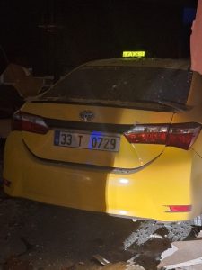 Olay, saat 04.00 sıralarında Mezitli ilçesine bağlı Yeni Mahalle Gazi Mustafa Kemal Bulvarı üzerinde meydana geldi. 33 T 0729 plakalı ticari taksinin sürücüsü, henüz belirlenemeyen bir nedenle direksiyon hâkimiyetini kaybederek yol kenarında park halindeki bir motosiklete çarptı. Çarpmanın etkisiyle savrulan araç, kaldırıma çıkarak bir mobilya mağazasının vitrinine girdi.