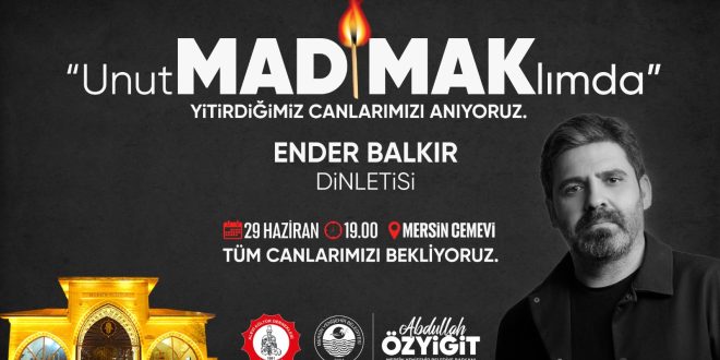 Yaşamını yitiren canları anmak ve toplumsal hafızayı canlı tutmak amacıyla gerçekleştirilecek anma programı sanatçı Ender Balkır’ın katılımıyla 29 Haziran Cumartesi günü saat 19.00’da Mersin Cemevi’nde yapılacak. Ender Balkırtürkülerini katliamda yaşamını yitirenlerin anısına seslendirecek.