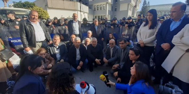 DEM Parti Mersin Milletvekili Ali Bozan, Mersin Milletvekili Perihan Koca, DEM Parti Mersin İl Başkanı Bedriye Kuş ile belediye meclisi üyelerinin de aralarında bulunduğu grup belediye bahçesine girmek istediyse de polis ekipleri izin vermedi. Bu sırada polisle gösterici grup arasında arbede yaşandı.
