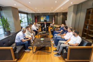 Tarsus Medya Mensupları Derneği (MEDYAD) Başkanı Okan Çalışkan ve yönetim kurulu üyeleri Mersin Büyükşehir Belediye Başkanı Vahap Seçer’i makamında ziyaret etti.