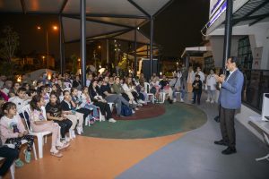 Cumhuriyet’in 100’üncü yılında Mersin Büyükşehir Belediyesi’nin çocuklara armağan ettiği ‘Mercan 100. Yıl İklim ve Çevre Bilim Merkezi’ kapılarını ‘Gece Gözlem Etkinliği’ne ilk kez açtı. Açıldığı günden bu yana bilim meraklılarının uğrak noktası olan ve her gelenin bir daha gelmek istediği Mercan, bu kez de gökyüzü meraklılarını ağırladı. Etkinliğe yoğun ilgi gösteren çocuklar, büyük bir heyecanla gökyüzünü seyre daldı. Geleceğin bilim insanları etkinlik sayesinde ilk kez böyle bir deneyim yaşamanın keyfine vardı.