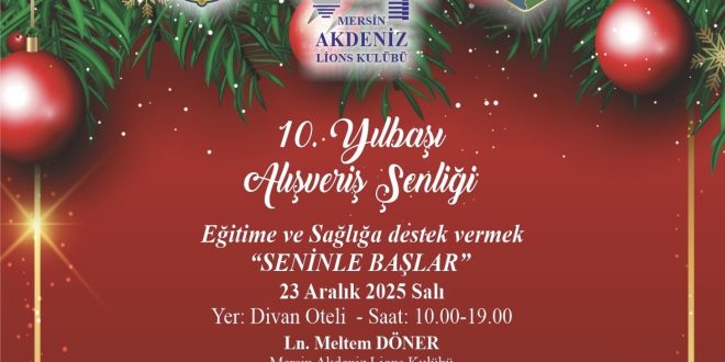 Mersin Akdeniz Lions Kulübü tarafından geleneksel hale getirilen Yılbaşı Alışveriş Şenliği, bu yıl 10. kez düzenleniyor. Eğitim ve sağlık alanındaki sosyal sorumluluk projelerine destek sağlamak amacıyla gerçekleştirilecek olan şenlik, 23 Aralık 2025 tarihinde Mersin Divan Oteli’nde kapılarını açacaktır.
