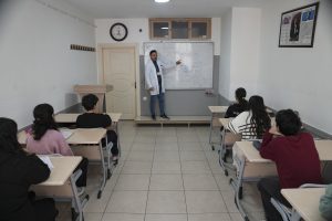 Mersin Büyükşehir Belediyesi Eğitim ve Öğretimi Destekleme Kurs Merkezi Akdeniz Şubesi Sorumlusu ve Tarih Öğretmeni Meriç Akmanlar Güler, “Anamur’dan Tarsus’a kadar 21 kurs merkezimizden, toplam 8 bin 600 öğrenci ücretsiz faydalanıyor. Sınavlara hazırlık sürecimizde deneme sınavları, kaynak kitap dağıtımı, birebir etütler ve sınav sonrasındaki konu analizleri ile birlikte, öğrencilerimizin hem LGS hem de YKS hazırlık süreçlerini destekliyoruz” dedi. Sınavlara 5-6 aylık bir süre kaldığını kaydeden Güler, “Eğitim hizmetlerimiz 5, 6, 7, 8, 11 ve 12. sınıflarımız için devam ediyor. Ortaokul gruplarımıza her gün öğle yemeği ikramında bulunuyoruz. Böylece öğrencilerimiz karnı tok bir şekilde derslerine ve okuluna gidebiliyor. Bu da hem aile bütçesine, hem de çocuklarımızın sağlıklı beslenmelerine büyük bir katkı sağlıyor” diye konuştu.