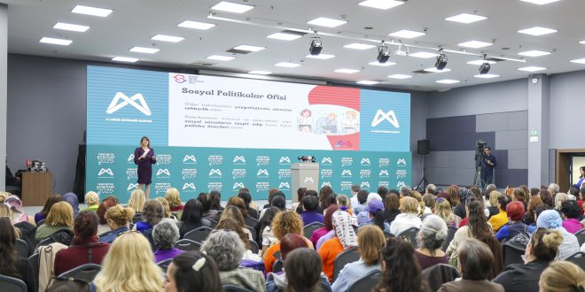 Büyükşehir’in Sosyal Politikalar Ofisi’nin çalışmalarını katılımcılara anlatan Sosyal Politikalar Ofisi Program Yürütücüsü Melek Bahat, “Sosyal Politikalar Ofisi, Mersin’in örnek sosyal politikalarının yarattığı sosyal etkileri analiz edip, iyi uygulamaları tespit ediyor. Diğer belediyelere yaygınlaştırılması sürecinde rehberlik görevi görüyoruz. Şu anda da, gelecekte oluşabilecek sorunları ön görerek, oluşabilecek yeni politika önerileri geliştirmeye çalışan bir ofisiz. Mersin’in 100’ü aşkın örnek projesi var. Bu iyi örnekleri tespit ediyor ve diğer yerel yönetimlere kolaylaştırıcılık süreci yapıyoruz” ifadelerine yer verdi.