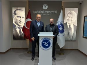 Mersin Büyükşehir Belediyesi Kariyer Merkezi Müdürü Serkan Özada, 2019 yılında merkezin kuruluş sürecinden itibaren Çağ Üniversitesi ile koordinasyon kurulu, insan kaynakları zirveleri, mentorluk programları, kariyer günleri ve profesyonel yöneticilerle buluşma etkinlikleri başta olmak üzere, birçok alanda önemli iş birliklerine imza atıldığını ifade etti. Mersin’de faaliyet gösteren üniversitelerle iş birliklerinin artarak devam edeceğini vurgulayan Özada, 2026 yılında hayata geçirilmesi planlanan Kampüs Mersin ve Garaj Mersin projelerine ilişkin bilgilendirme sonrasında, Çağ Üniversitesi Rektörü Prof. Dr. Murat Koç’a nazik ev sahipliği ve iş birliğine verdikleri katkılar dolayısıyla teşekkürlerini iletti.