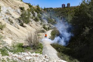 Mersin Büyükşehir Belediyesi Gülnar Koordinasyon Şube Müdürlüğü İlaçlama Sorumlusu İsa Levent, düzenli aralıklarla ilaçlama ve temizlik çalışmaları sürdürdüklerini ifade etti. Gülnar halkına daha sağlıklı bir çevre sağlamak için hizmet ettiklerini belirten Levent, “Hava şartları doğrultusunda larva, haşere, sivrisinek, uçkunla mücadeleye gece gündüz devam ediyoruz. Bölgelere ve hava sıcaklıklarına göre 10-15 günde bir; havuz, logar ve dere çevresi gibi bölgeleri ilaçlıyoruz” diye konuştu.