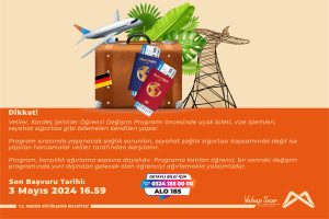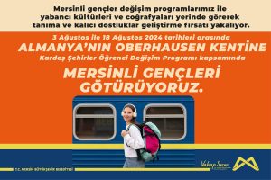 Mersinli gençlerin değişim programı ile yabancı kültürleri vecoğrafyaları yerinde görebilmesi ve kalıcı dostluklar geliştirebilmesi adına yapılan Kardeş Şehir Öğrenci Değişim Programı sayesinde gençler farklı ülkeler görme fırsatı yakalıyor. Program kapsamında bu yaz gençler Almanya’nın Oberhausen kentine gidecek. 3-18 Ağustos tarihleri arasında yapılacak gezi için hazırlıklarını titizlikle sürdüren Büyükşehir Belediyesi, başvuruları almayı sürdürüyor. Bilgi almak isteyenler www.mersin.bel.tr ile Teksin Mersin’in ve Alo 185 üzerinden alabilecek.