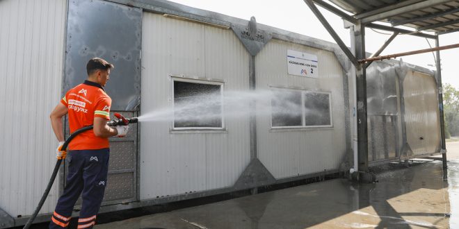 Mobil kesim üniteleri çevresinde arazözlerle tazyikli su ile yıkama işlemleri yapılırken, aynı zamanda çöp konteynerlerinde ilaçlama ve temizlik çalışmaları da gerçekleştiriliyor. Büyükşehir her Kurban Bayramı’nda olduğu gibi bu bayramda da hem çevre sağlığı korudu hem de vatandaşların huzurlu bir bayram geçirmesini sağlıyor.