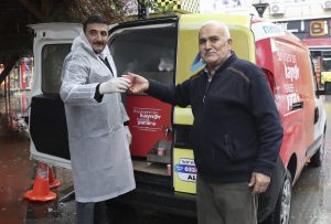 Emekli öğretmen Rahmi Süzer, “Vahap Bey’e teşekkür ederim. Çok iyi çalışıyor. Bu soğukta kaynar ikramı ilaç gibi geldi. Herkesin mutlu, huzurlu olduğu bir yıl temenni ediyorum” ifadelerine yer verdi.