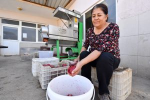 Nar taneleme işleminde en çok kadınların yorulduğunu kaydeden Bahçe Mahallesi sakinlerinden Zeynep Kurt, “Önceden en az 8-10 kişiyle nar çırpıyorduk. En az 2 gün çırpmamız gerekiyordu. Ama şimdi makine sayesinde işi yarım günde bitiriyoruz. Biz 30 yıldır nar ekşisi üretiyoruz. Makine bizim için büyük kolaylık sağladı. O yüzden Büyükşehir Belediye Başkanımız Vahap Bey’e teşekkür ediyorum”şeklinde konuştu.