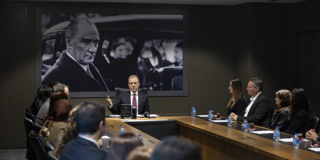 Mersin Büyükşehir Belediyesi bünyesinde görev yapan öğretmenler, 24 Kasım Öğretmenler Günü dolayısıyla Türkiye Belediyeler Birliği Başkan Vekili ve Mersin Büyükşehir Belediye Başkanı Vahap Seçer’i ziyaret etti. Eğitimde fırsat eşitliği ilkesiyle kentteki öğrencilerin hedeflerine ulaşma yolculuğunda önemli bir rol üstlenen Büyükşehir tarafından istihdam edilerek, hem öğrencilere hem de ailelere dokunan çalışmalar yürüten öğretmenler, yürüttükleri eğitim faaliyetlerinin kent genelindeki etkilerine dair görüşlerini paylaştı. Başkan Seçer de öğretmenlerin emekleri ve katkılarından dolayı memnuniyetini dile getirdi.