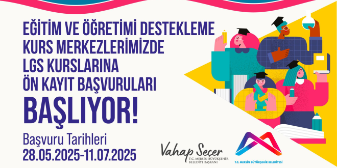Mersin Büyükşehir Belediyesi Sosyal Hizmetler Dairesi Başkanlığı Eğitim Hizmetleri Şube Müdürlüğü’ne bağlı Eğitim ve Öğretimi Destekleme Kurs Merkezleri’nde, Liselere Geçiş Sistemi (LGS) ile Yükseköğretim Kurumları Sınavı (YKS)  kurslarına yönelik ön kayıt başvuruları başladı. 28 Mayıs tarihinde başlayan ön kayıt başvuruları, 11 Temmuz tarihine kadar devam edecek.