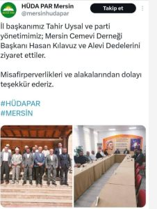 HÜDAPAR Mersin il yönetiminin Mersin Cemevini ziyaret etmesi sonrası üyelerin bardağı taşıran son damla olarak gördüğü ziyaret kısa sürede sosyal medyada gündem oldu.